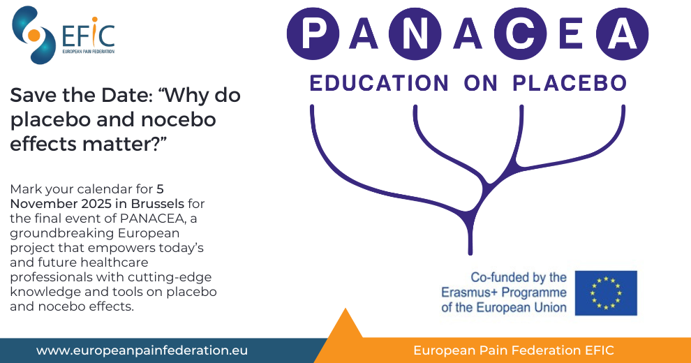 Il prossimo 5 novembre 2025 si terrà a Bruxelles, presso Flagey Studio 5 (Place Sainte-Croix) e online, la Final Conference di PANACEA, organizzata dal partner di progetto European Pain Federation (EFIC).