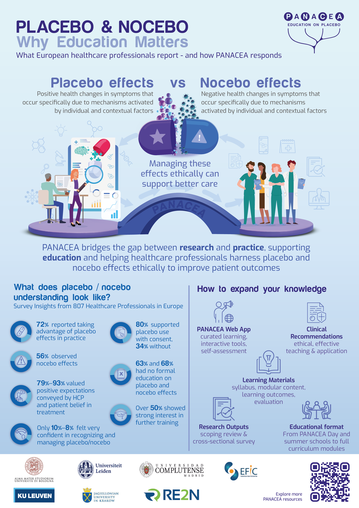 Gli effetti placebo e nocebo possono influenzare in modo significativo gli esiti dei pazienti, ma restano tra i temi meno trattati nella formazione medica. Negli ultimi tre anni, il progetto Erasmus+ PANACEA – coordinato dal Dipartimento di Scienze Mediche e Chirurgiche (DIMEC) dell’Università di Bologna – ha lavorato per colmare questa lacuna, sviluppando risorse basate sull’evidenza e integrando le conoscenze scientifiche sugli effetti placebo e nocebo nella formazione clinica a livello europeo.